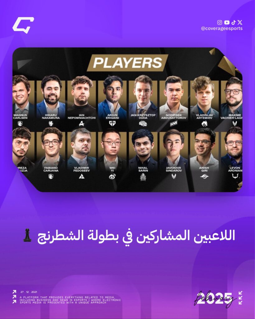 شاركها فيسبوك تويتر لينكدإن بينتيريست البريد الإلكتروني Copy Link إليكم اللاعبين المشاركين في بطولة الشطرنج ضمن منافسات كاس العالم للرياضات الالكترونية 2025. EWC2025 شطرنج كاس العالم للرياضات الالكترونية 2025