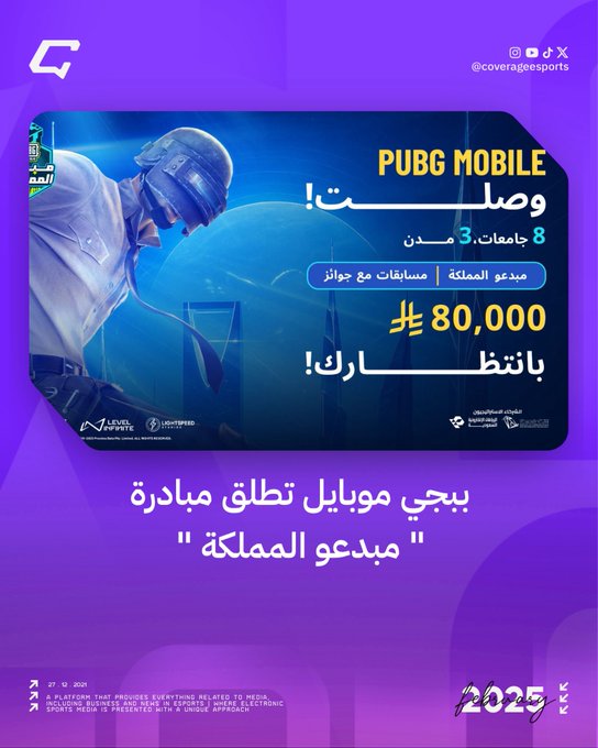 أعلنت PUBG MOBILE، إحدى أشهر ألعاب الهاتف المحمول في العالم، عن إطلاق مبادرة ” ببجي موبايل مبدعو المملكة ” في المملكة العربية السعودية، بدعم من وزارة الاتصالات وتقنية المعلومات والاتحاد السعودي للرياضات الإلكترونية، لتوفير فرص للطلاب لتنمية مهاراتهم والمساهمة في تطوير منظومة الألعاب والرياضات الإلكترونية.