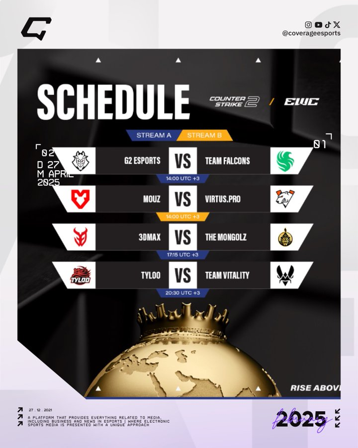 إليكم جدول مباريات اليوم الثاني من بطولة Counter-Strike 2 ضمن منافسات #كاس_العالم_للرياضات_الالكترونية 2025، تنطلق اليوم الساعة الثانية مساءً بتوقيت السعودية