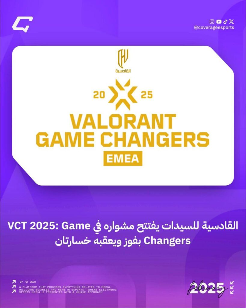 Al Qadisiyah Women’s Team opened their participation in the VCT 2025: Game Changers EMEA Stage 3 Valorant tournament with a 2-1win over SK Nebula, before losing to G2 Gozen and BLVKHVND by 2-0 each.